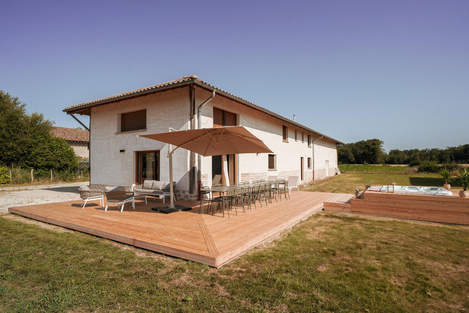 - une grande terrasse conviviale, idéale pour les repas et les longues soirées d’été sous les étoiles